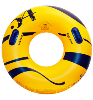 • Einzelreifen aus PVC Außendurchmesser : 111cm (Innendurchmesser : 42cm). Schöner Allround-Wasserreifen. Robuster 10-cm-Steg mit doppelter Innennaht. 2 Haltegriffe auf 10.00 und 2.00 Uhr-Position. Farbe (PVC/Markierung): Gelb/Blau.